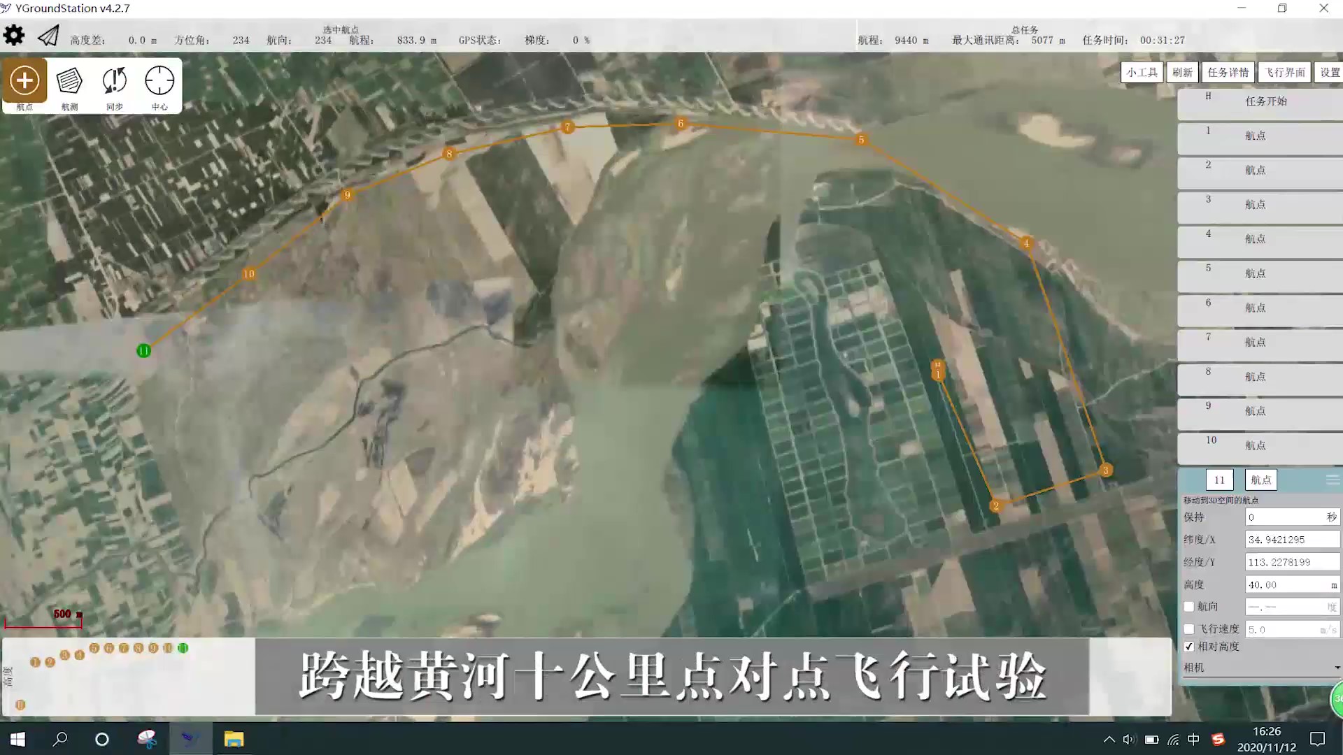 跨越黃河十公里點對點飛行試驗